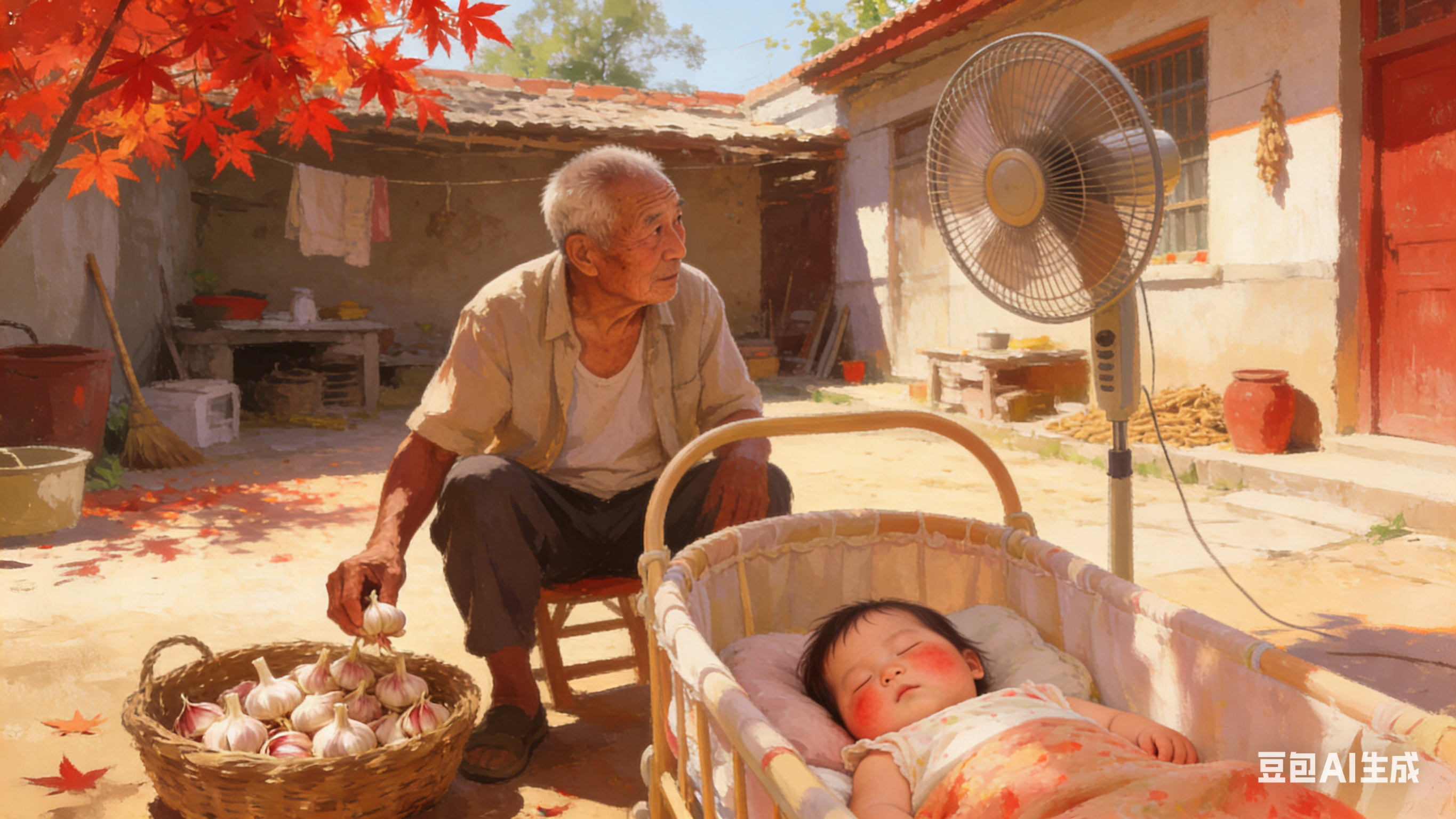 陽光熱辣辣地照射在院子里。街道上,巷子里,連同這個小小的獨院中,都闃無人跡,鴉雀無聲,既沒有鳥兒百合花般的歌聲,也沒有蟬兒無精打采,吐血一樣的嘶鳴。都到秋天了,天氣還是這么熱,這“秋老虎”的天氣絲毫不比盛夏時節“差勁”呢,我放下手中的大蒜,在風扇下站起身來,望了望身后的小孫女,她正在搖籃里酣睡著,臉兒熱得紅撲撲的,仿佛是秋天的紅葉谷中,燃燒的紅楓林顏色。