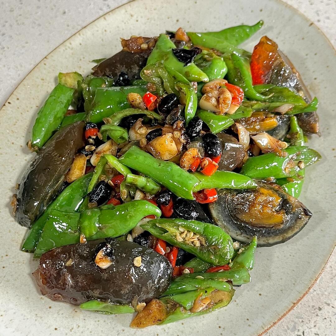 青椒溫中散寒、能助陽氣生發,皮蛋風味獨特、口感Q彈,兩者搭配清炒,香辣開胃、口感豐富,既能升陽驅寒,又能打開食欲,家常聚餐吃超合適。