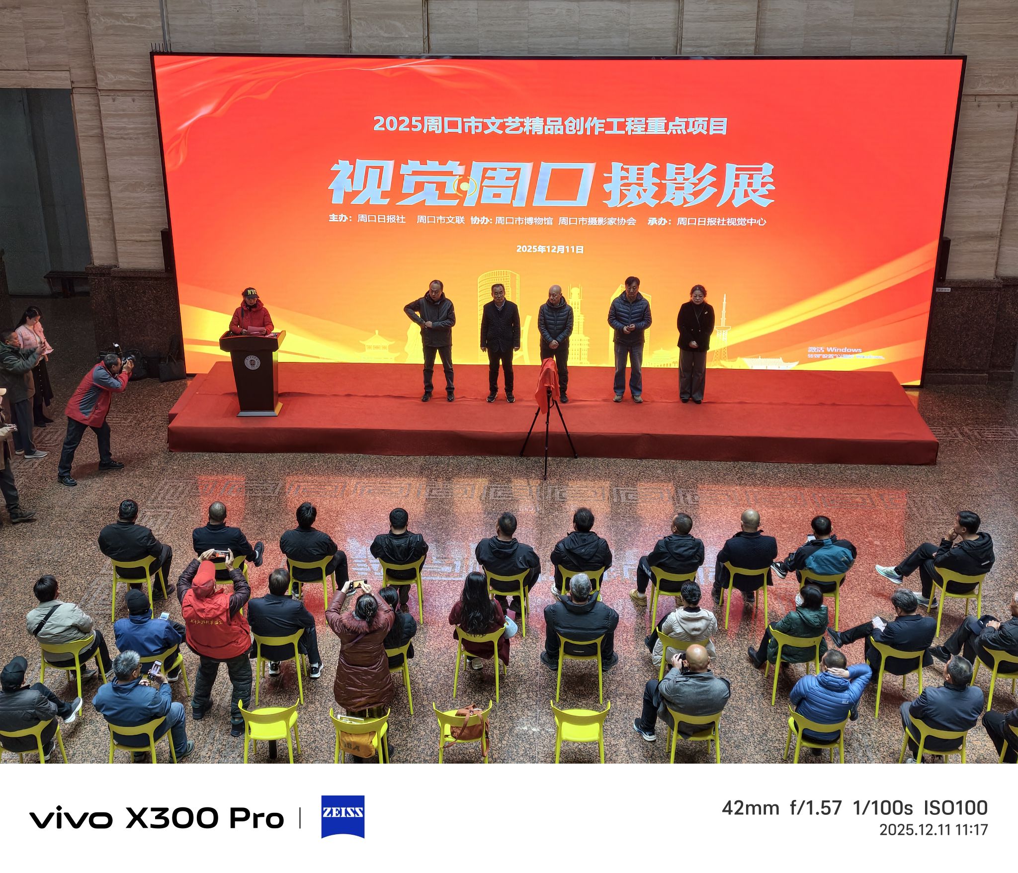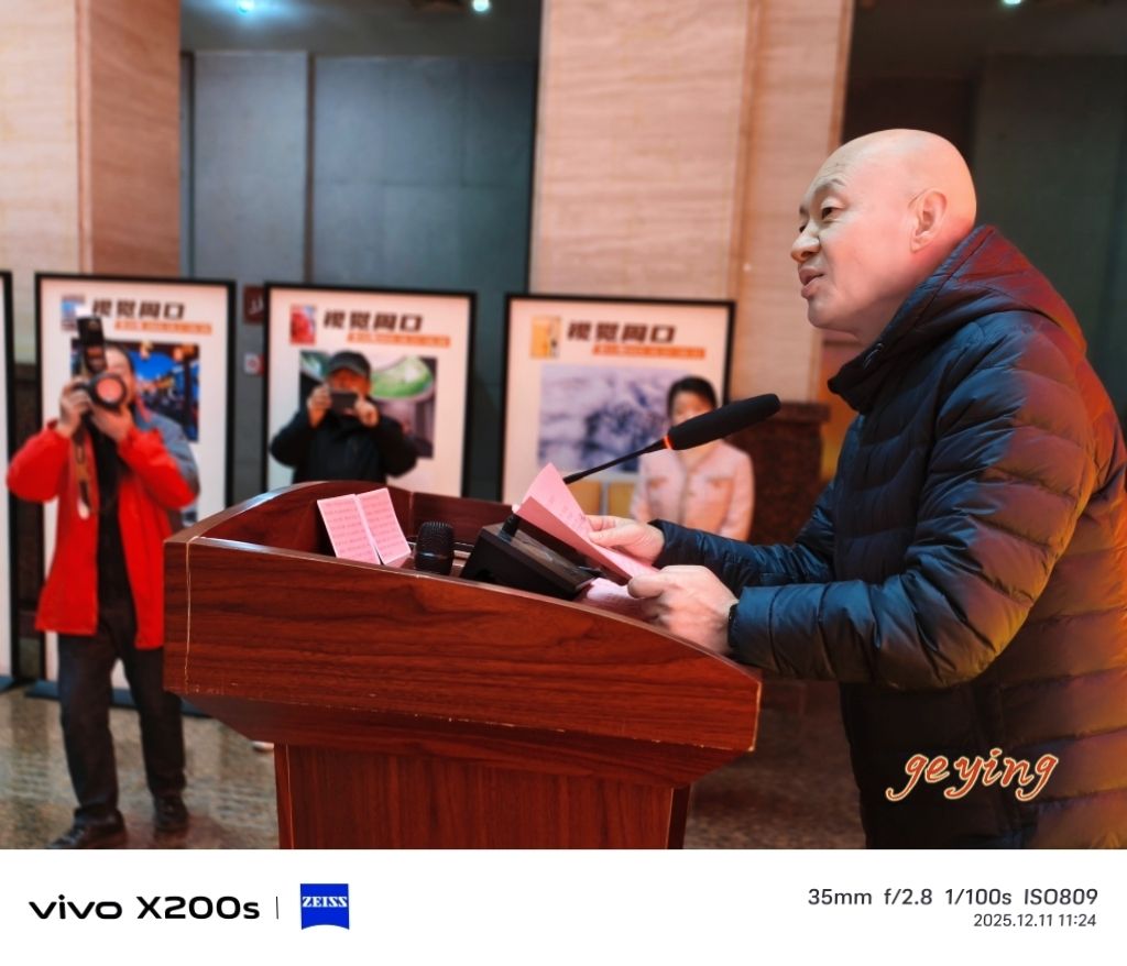 今日的周口市博物館,光影交織映初心,暖意融融聚知音。我們懷著無比喜悅與自豪的心情,共同見證“視覺周口攝影展”隆重開幕!在此,我謹代表《周口日報》“視覺周口”欄目全體通訊員,向影展的順利啟幕致以最誠摯的祝賀,預祝本次影展圓滿成功!同時,向精心策劃本次活動的周口報社領導、深耕幕后的編輯老師,以及每一位蒞臨現場的嘉賓朋友,致以最衷心的感謝!