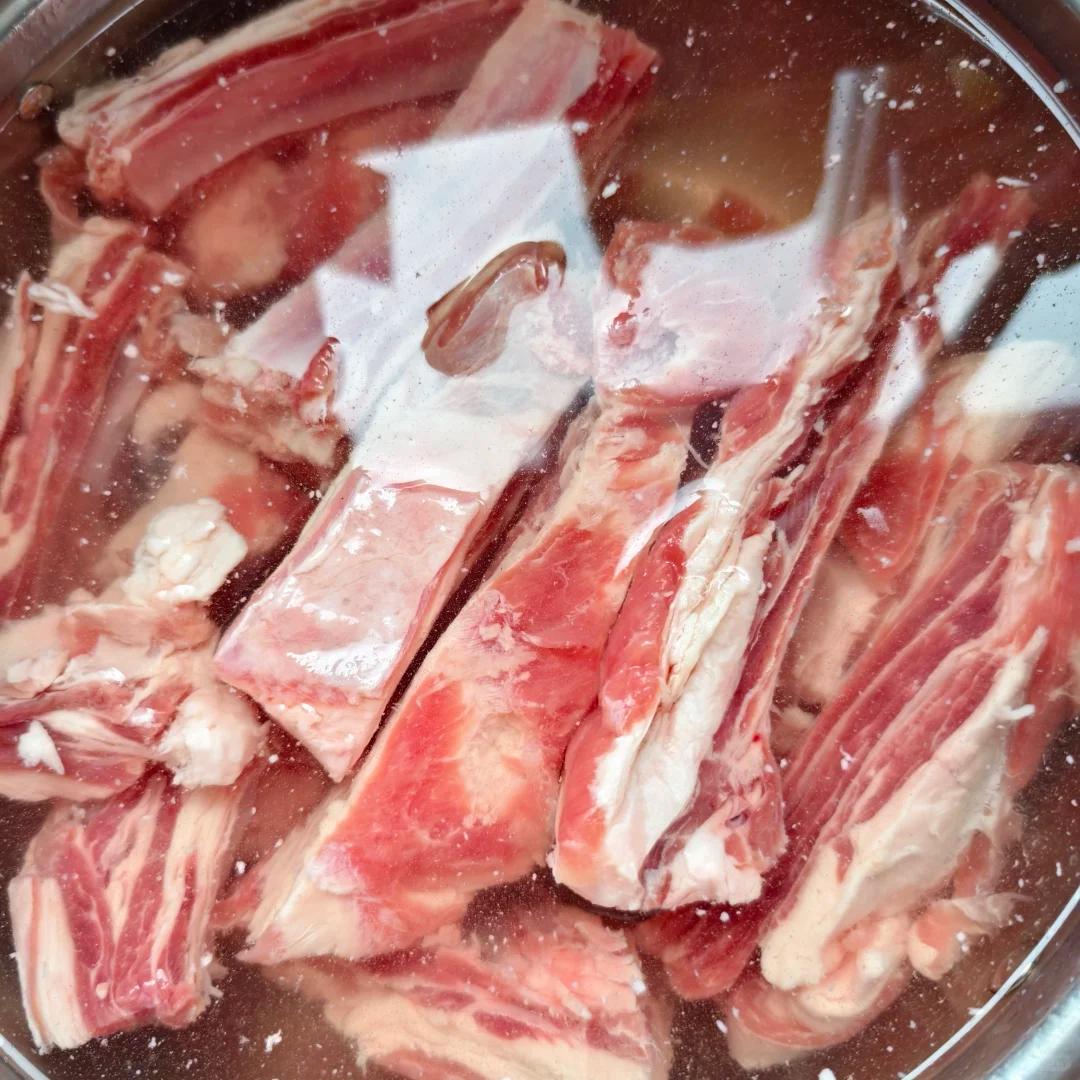 泡好后冷水下鍋,加幾片姜、一段蔥和一勺料酒,大火煮開(kāi),撇去表面的浮沫,再把羊肉撈出來(lái)用溫水沖干凈。