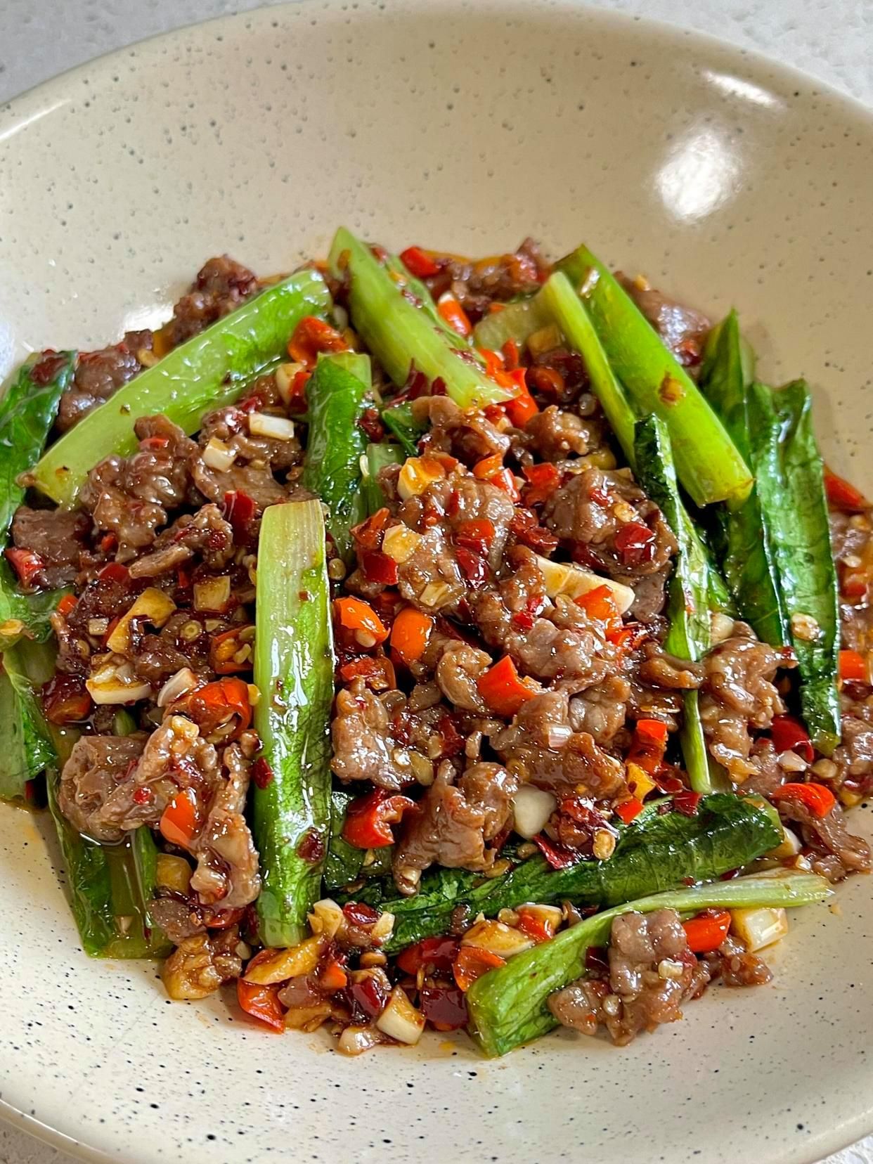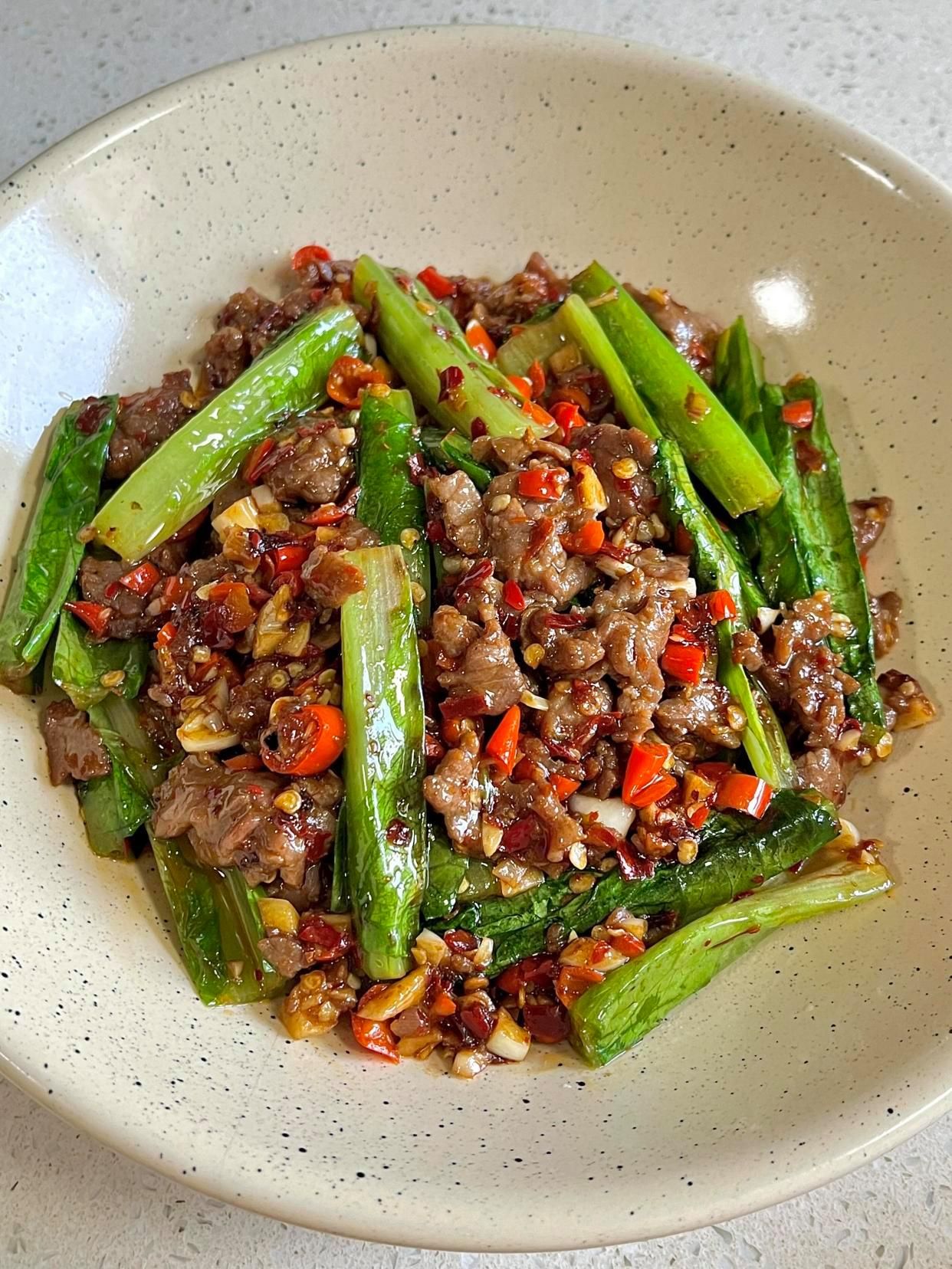 一、油麥菜炒牛肉:清新脆嫩,低卡高纖