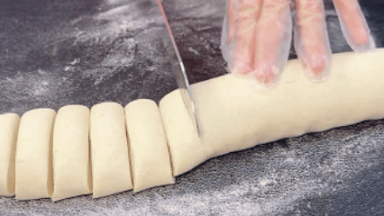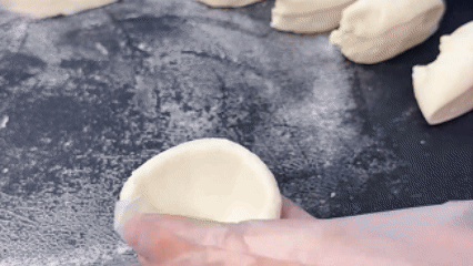 再平均分成大小一致的面劑(每個約50克),每個搓圓后,用拇指按壓底部形成窩窩狀。