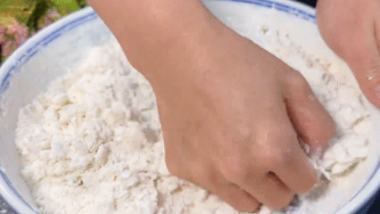 攪成較大的面絮后,用手揉成一個軟硬適中的光滑糯米面團。揉好后蓋上保鮮膜密封,發酵至原體積的兩倍大。