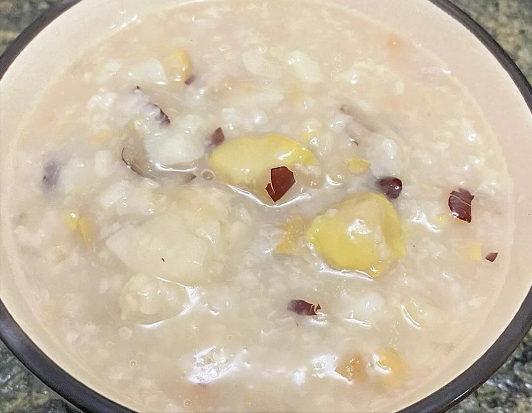 板栗養腎健脾,山藥溫補脾胃、固腎益精,搭配大米煮成粥,黏稠軟糯、香甜可口,既能滋養腎和脾胃,又能補氣血,早餐喝一碗,暖身又養人,消化差的人也能放心吃。