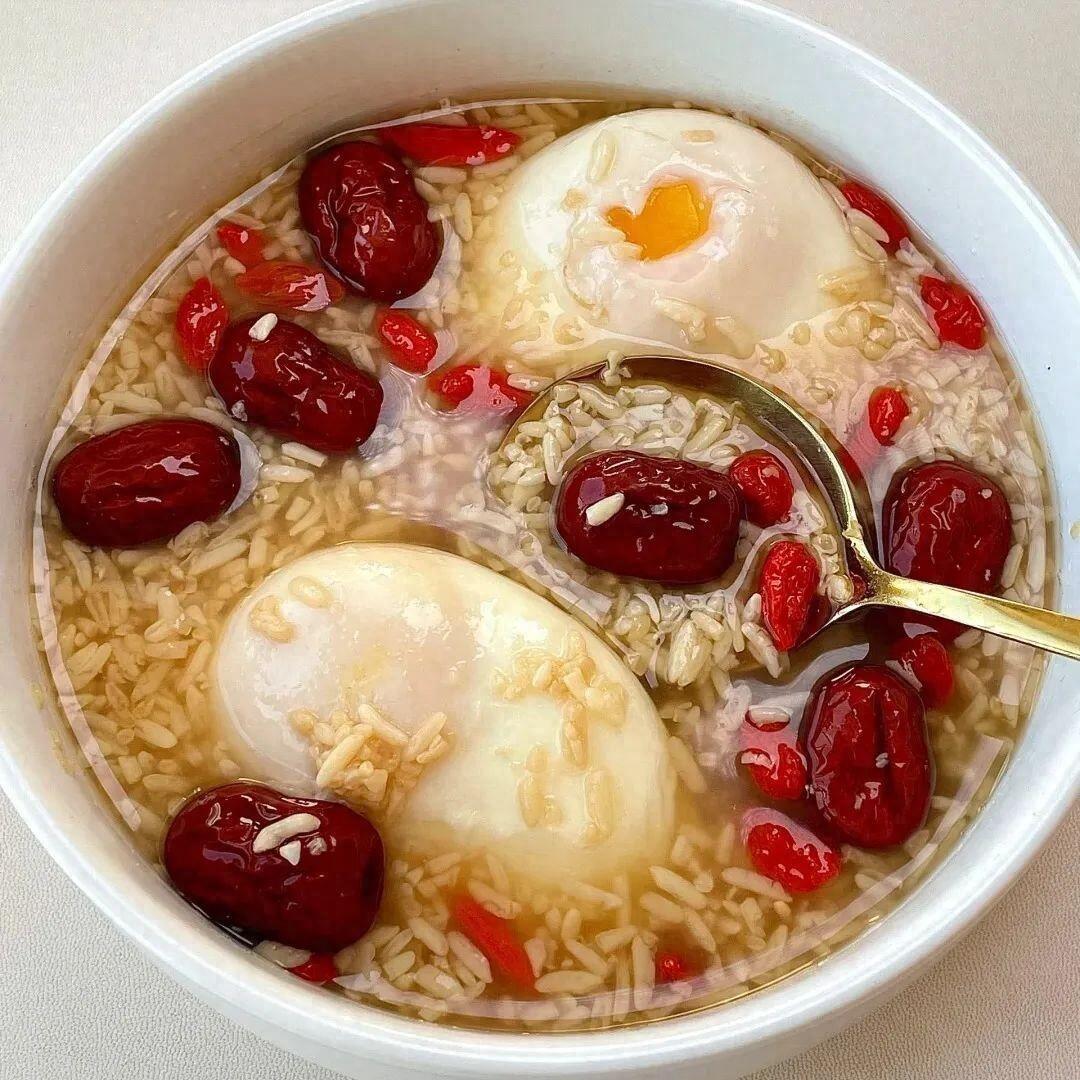 酒釀溫陽散寒,紅糖益氣暖身,雞蛋補營養,三者搭配煮成甜湯,香甜溫潤、入口順滑,既能快速補陽驅寒,又能補充能量,早上喝一碗渾身都暖和。