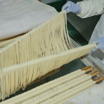 豫東鄲城的粉坊里,一口大鐵鍋沸水翻滾,老師傅雙手捧著漏瓢——拳頭大的漏眼擠出玉色粉團(tuán),銀絲垂落鍋中如飛瀑。竹竿挑起粉條,在冷水缸里“唰”地一激,立刻變得筋道透亮。院里竹竿成林,粉條隨風(fēng)輕晃,陽光穿過冰晶折射出彩虹,老輩人說:“這叫‘粉條晾秋’,曬的是太陽,攢的是福氣!”