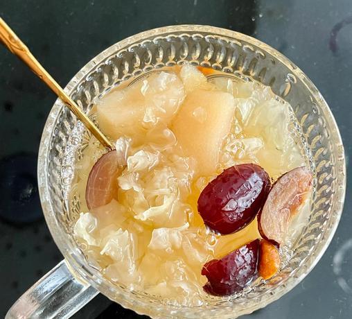 銀耳有“平民燕窩”之稱,中醫(yī)認(rèn)為它滋陰潤肺、養(yǎng)胃生津。紅棗補(bǔ)氣血,雪梨潤燥止咳,三者搭配,湯羹濃稠,入口軟滑清甜。適合口干舌燥、皮膚干、怕冷的女性,飯后或下午茶來一碗,肚子暖暖,臉色都變得紅潤些。