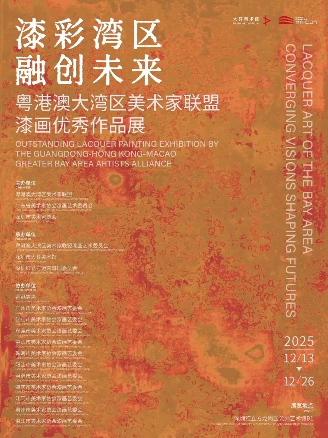 漆藝,承載八千年華夏文明,正于粵港澳大灣區煥發時代新生。本次展覽,正是以漆畫為藝術紐帶,呈現灣區文化活力與創新精神的一次集中檢閱。漆彩灣區?融創未來——“漆彩”,既是大漆材質深邃溫潤的視覺魅力,更是藝術家多元探索的精神寫照;“融創”,是展覽的核心精神。