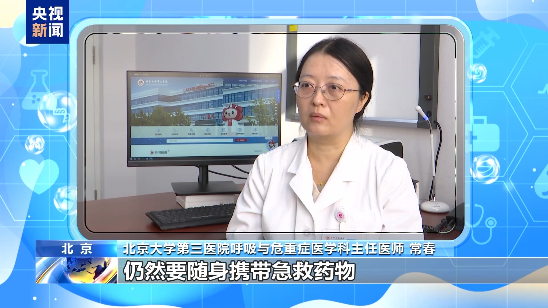北京大學(xué)第三醫(yī)院呼吸與危重癥醫(yī)學(xué)科主任醫(yī)師 常春:一定要隨身攜帶急救藥物,即便是很長(zhǎng)時(shí)間沒有發(fā)作的患者,仍然要隨身攜帶急救藥物,因?yàn)榧本人幬镂胍院笃鹦Х浅?臁?