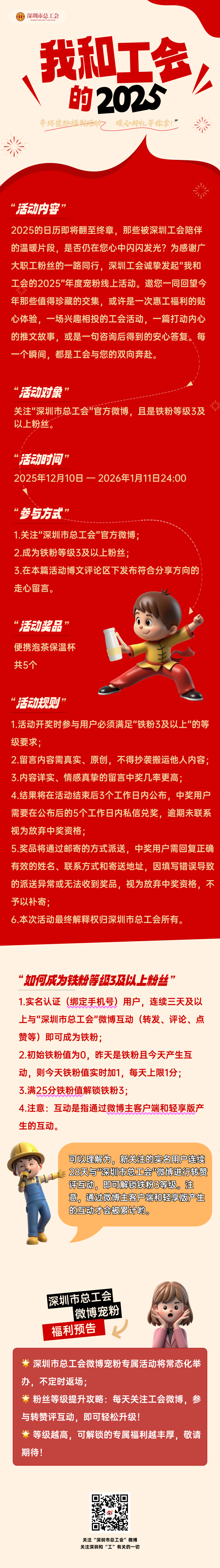 時光匆匆,2025年已留下無數(shù)溫暖點滴。這一年,你是否在工會活動中結(jié)識了新朋友?是否在某個服務(wù)中感受到了“娘家人”的關(guān)懷?……登錄微博,參與“深圳市總工會”發(fā)起的#我和工會的2025#活動,將有機會獲得便攜泡茶保溫杯一份。活動詳情如下,快來參與↓↓↓