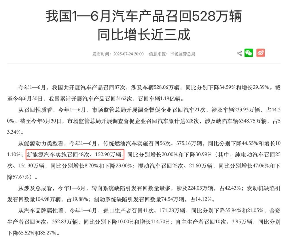 在2025年1-11月份,多家主流車企接連向監管局備案了召回計劃,涉及車輛累計超200萬輛。