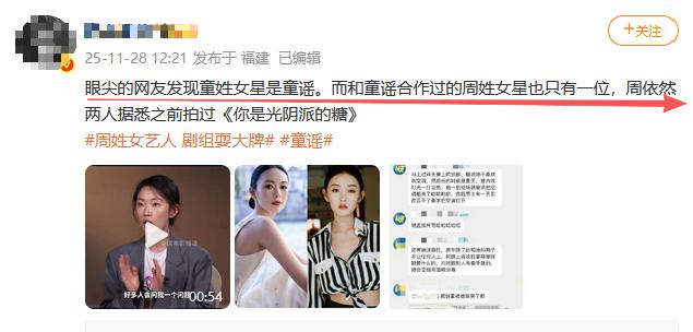 網友的“吃瓜雷達”迅速將目標鎖定為——周依然和童瑤。