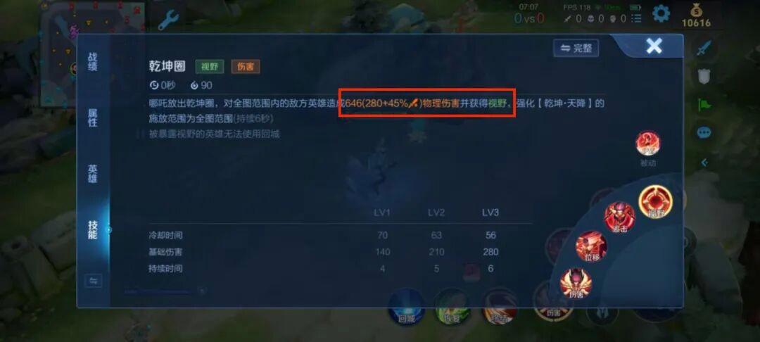 這個全圖視野不是立刻有的,是從自身擴散至全圖。開始是70秒,滿級滿cd的情況下大招是34秒左右,這樣一來哪吒四技能的作用就很廣了。如地圖全黑可用四技能照亮,有這個四技能哪吒甚至還能當輔助,后期34秒照亮一次視野,讓對面藏無可藏。乾坤圈可以對敵人造成傷害,但不是真實傷害,而是物理傷害。