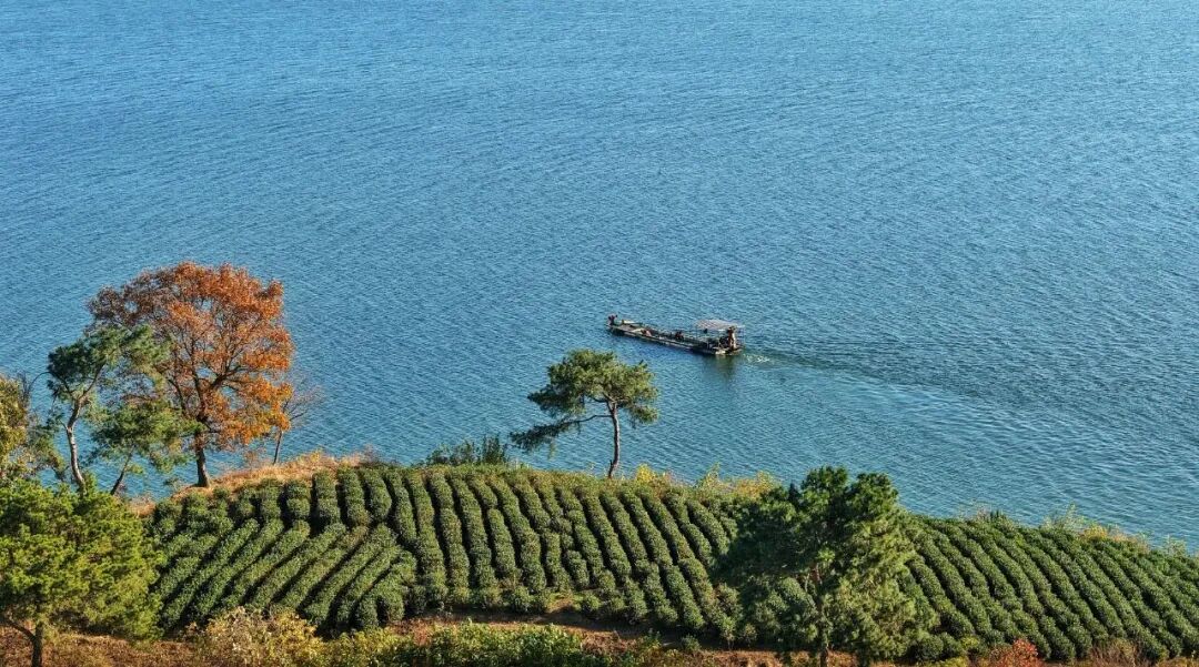 這些茶山吸收了南灣湖的水汽,在冬季形成了獨(dú)特的微氣候,為來(lái)年春茶積蓄著養(yǎng)分。