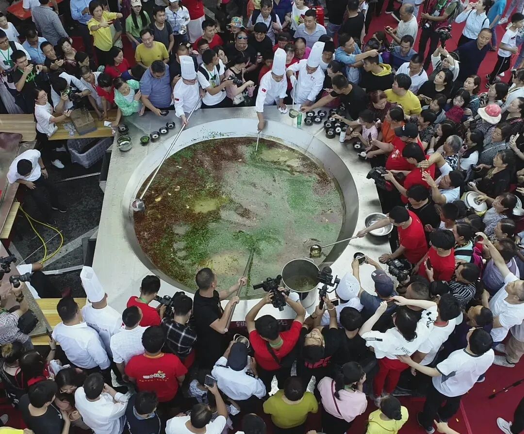 游客服務(wù)中心門(mén)前的廣場(chǎng)上,傳統(tǒng)的大鍋支起來(lái)了。
