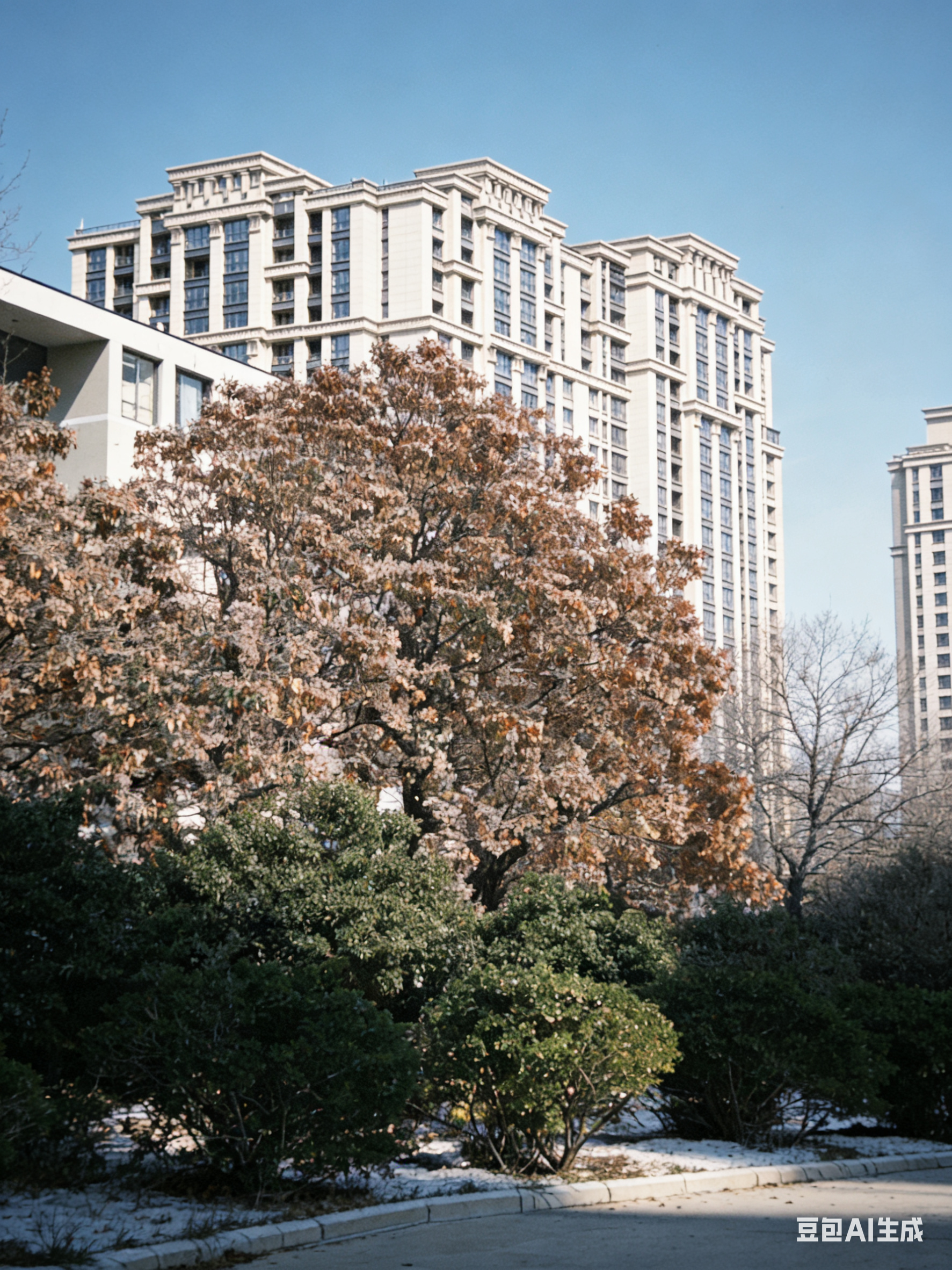 冬,枝椏托著殘雪,清冽的光勾勒出別樣輪廓。