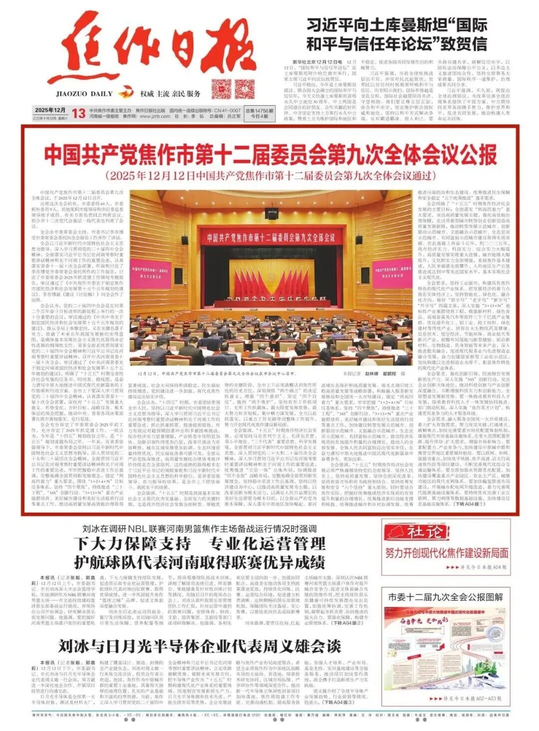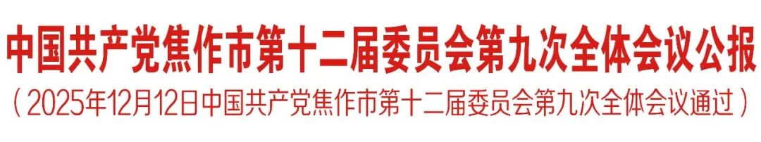 中國共產黨焦作市第十二屆委員會第九次全體會議,于2025年12月12日召開。