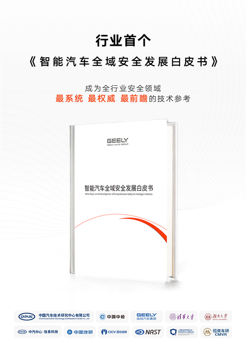 基于全球智能化浪潮推動汽車體驗(yàn)升級與安全技術(shù)全面拓展的趨勢,吉利聯(lián)合中汽中心、中國檢驗(yàn)認(rèn)證集團(tuán)、清華大學(xué)等11家產(chǎn)學(xué)研機(jī)構(gòu)共同發(fā)布了《智能汽車全域安全發(fā)展白皮書》,立足產(chǎn)業(yè)發(fā)展全局,明確以“人”為核心的全域安全目標(biāo),為行業(yè)安全發(fā)展提供了兼具戰(zhàn)略性與實(shí)操性的行動綱領(lǐng)。