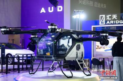 12月10日,觀眾在拍攝參展的飛行汽車飛行體。