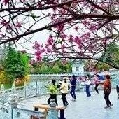 許昌市區(qū)處處游園、廣場(chǎng)柳綠花紅,風(fēng)光怡人,成為市民休閑健身的好去處。 高文勝 攝