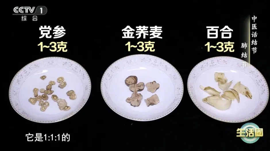 百合、黨參、金蕎麥,各取1-3克,用熱水沖泡飲用,能夠舒緩不良情緒、補肺氣、散結,適合肺結節人群飲用,也可以用于預防肺結節發生。(小提示:脾胃功能異常,經常胃腸脹氣的人群不宜飲用)