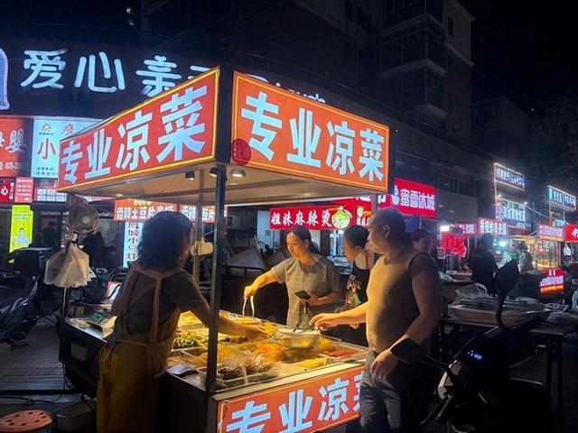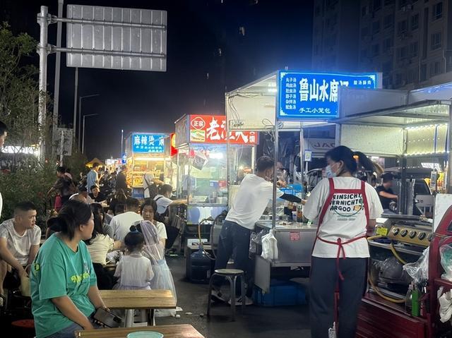 ?中興路美食集市?在郟縣城市廣場(chǎng)中段,規(guī)模最大有150家攤位,烙饃卷面筋是人氣王。