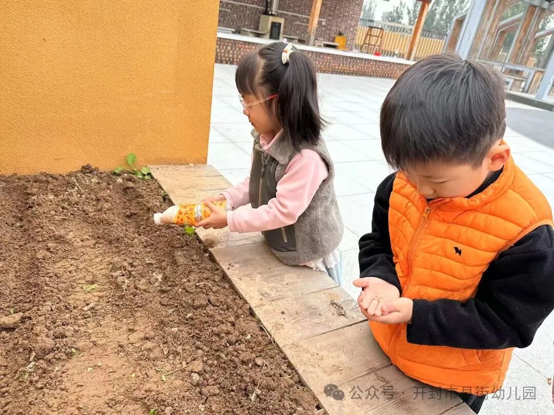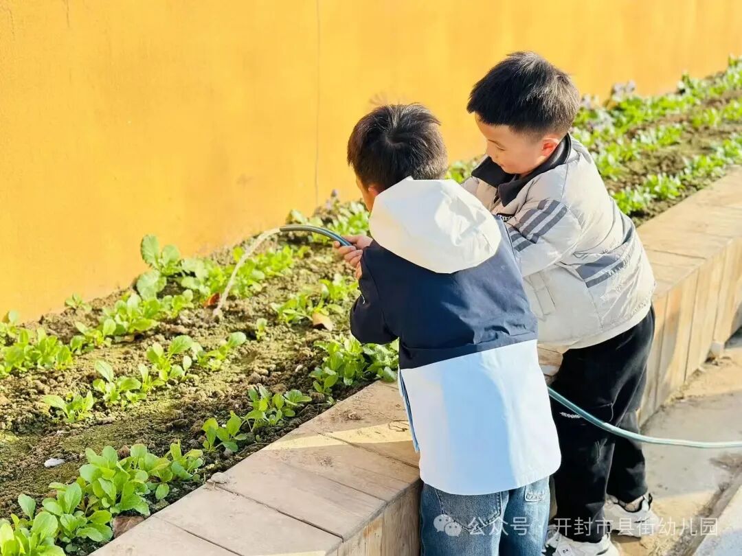 寶貝們翻土點(diǎn)種,輕蓋薄土,親手播下油菜種子;每日扶著小水管慢澆根部,溫柔叮囑油菜快快長(zhǎng)大,一手一澆間,藏著認(rèn)真的勞動(dòng)模樣,細(xì)心呵護(hù)每一顆嫩芽,既播下生長(zhǎng)的希望,也藏著對(duì)生命的期許。