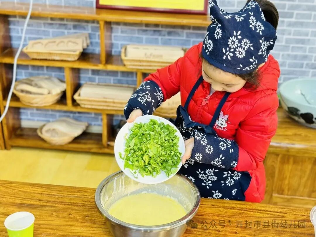 親手采摘鮮嫩油菜,清洗切碎后,搭配雞蛋、面粉攪拌均勻,煎成金黃軟糯的油菜雞蛋餅,一口鮮香滿是收獲的甜,在食育里懂食材珍貴,愛天然美味。