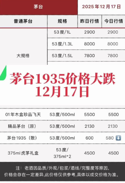 茅臺1935價格大跌,12月17日最新行情#老酒#茅臺193