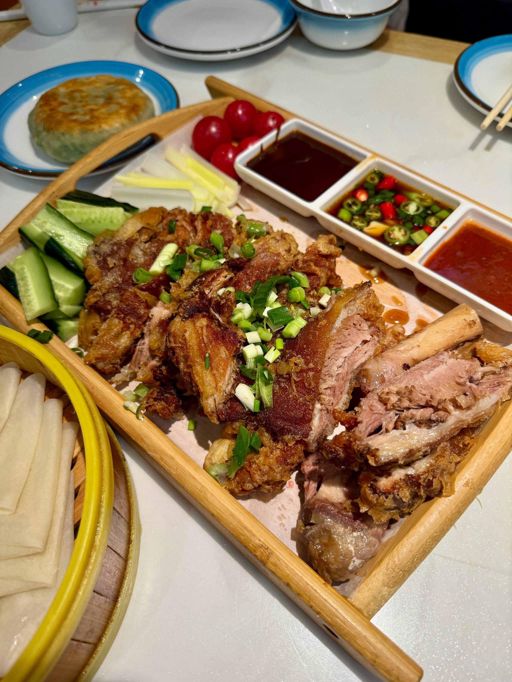 肉酥如膏,膠質黏唇,肥而不膩,瘦而不柴,蘸蔥段甜醬咥,香得人直咂嘴,連骨頭都恨不得啃干凈!