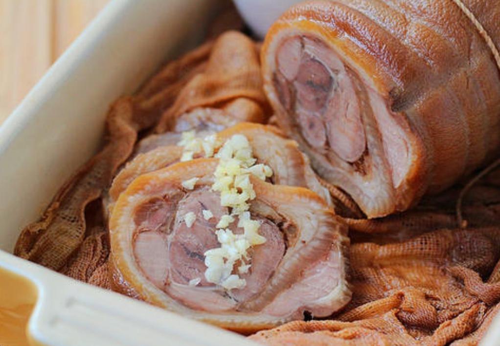 去骨腌漬、卷繩捆緊、文火慢燉四小時,晾涼刷醬即成,廚房小白也能上手。