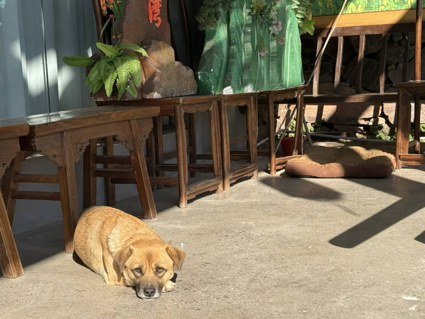 推開民宿木門,率先迎上來的不是主人,而是一只毛色澄黃的土狗。它不似城市里寵物犬的嬌憨,帶著山野的坦蕩,尾巴輕掃褲腿,暖絨絨的觸感漫過掌心,連日積壓的滯重竟悄無聲息地散了。老板笑言它叫 "小黃",是民宿的 "迎賓總管",對誰都這般熱忱。