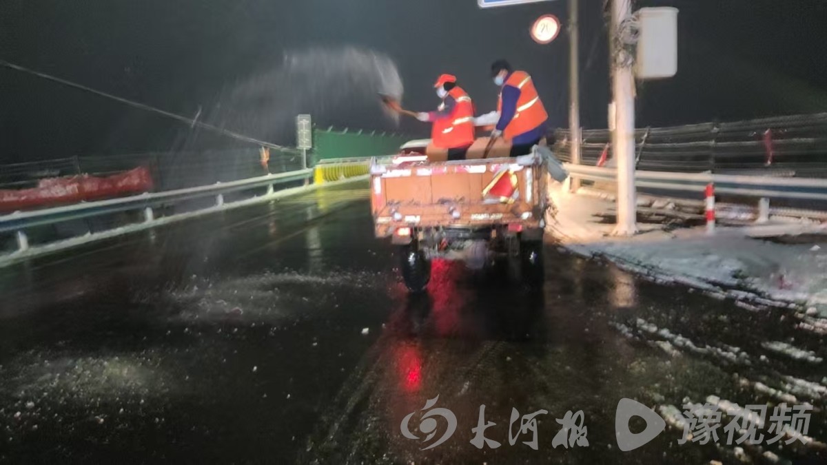 此次除雪保暢工作重點對橋梁、陡坡、急彎、背陰路段等易結冰區域進行撒融雪劑、人工清雪的方式同步推進。