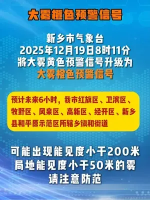 新鄉市發布大霧橙色預警信號 #大霧橙色預警信號 #天氣 #新鄉