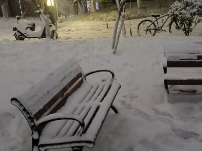 暮色燈光輝彩映,孩童斗雪笑聲悠。
