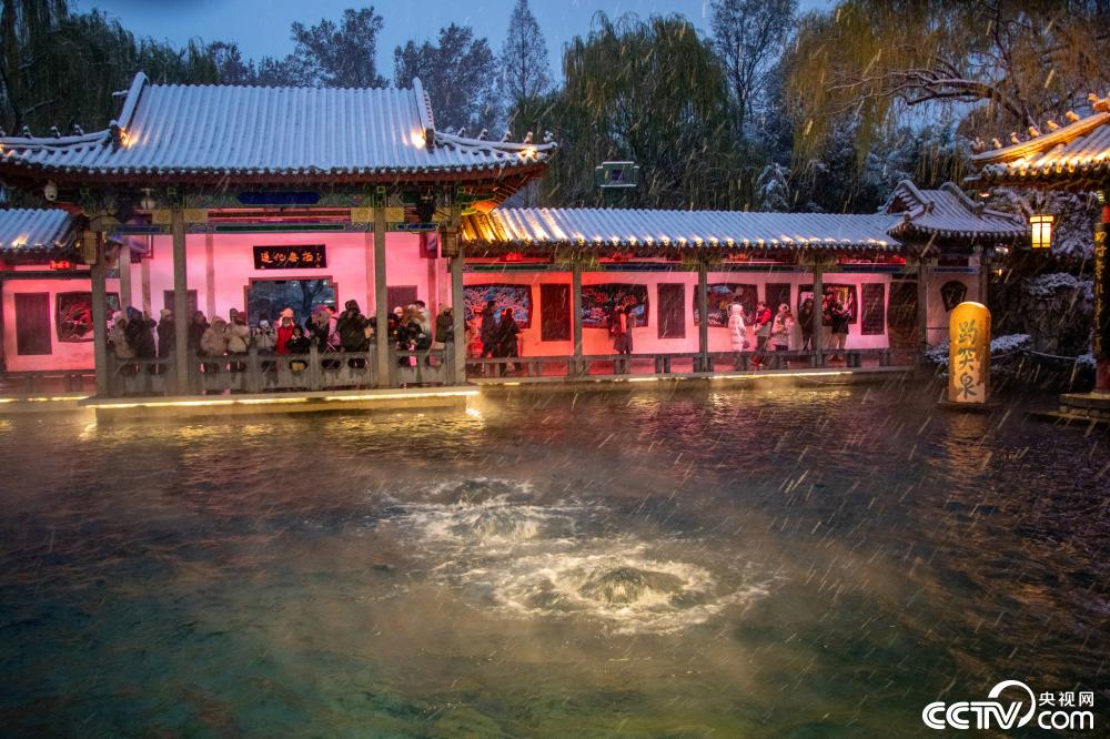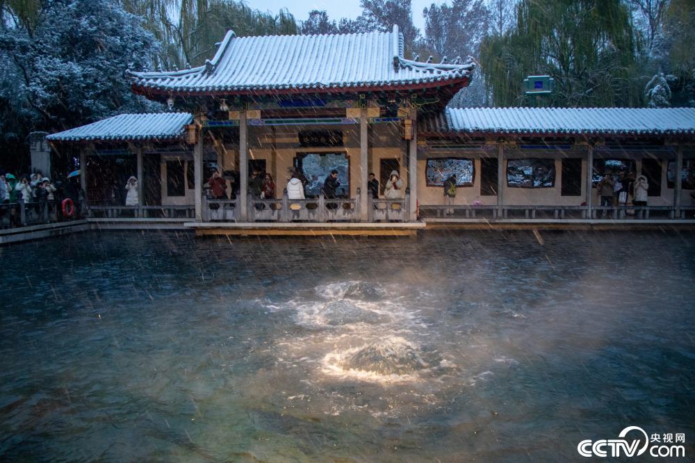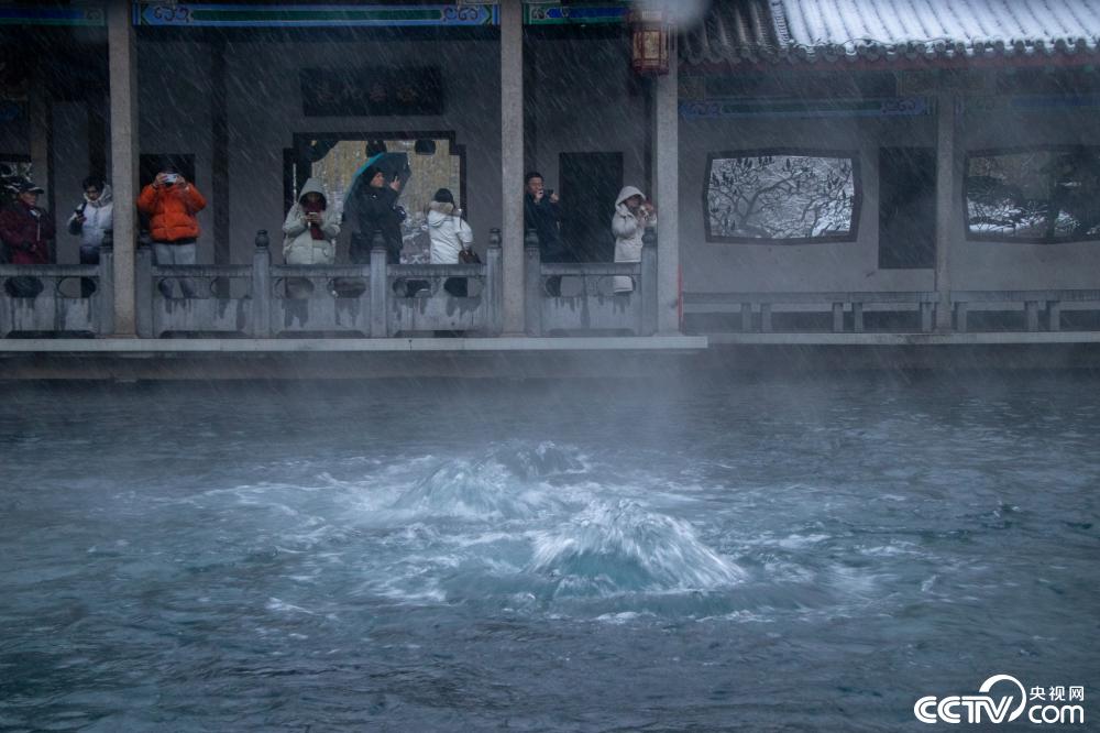 2025年12月12日,山東濟南,濟南迎來入冬首場降雪,在趵突泉景區內,三股泉水正噴涌騰空。由于泉水常年18度,在大雪天里熱氣十足,云霧繚繞仙氣十足,吸引游客駐足欣賞著難得的美景。視覺中國