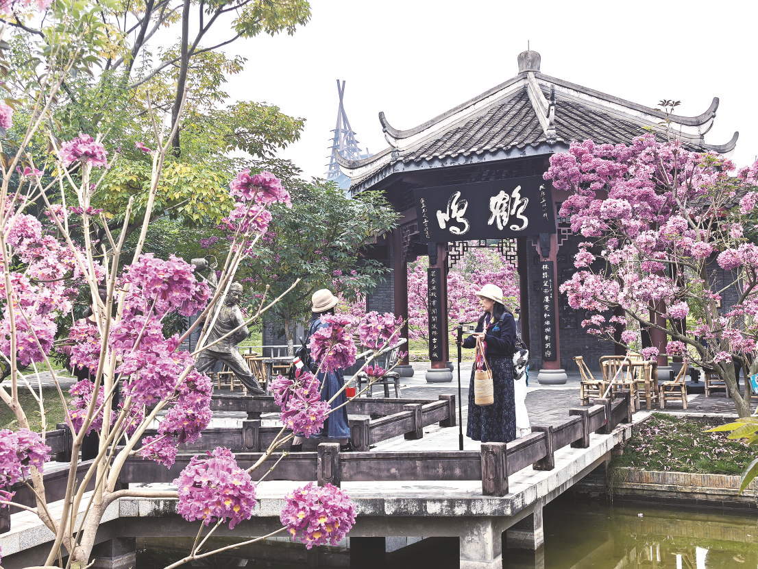紫花風(fēng)鈴木花開(kāi),吸引游客前來(lái)打卡。莫嵐遠(yuǎn)攝