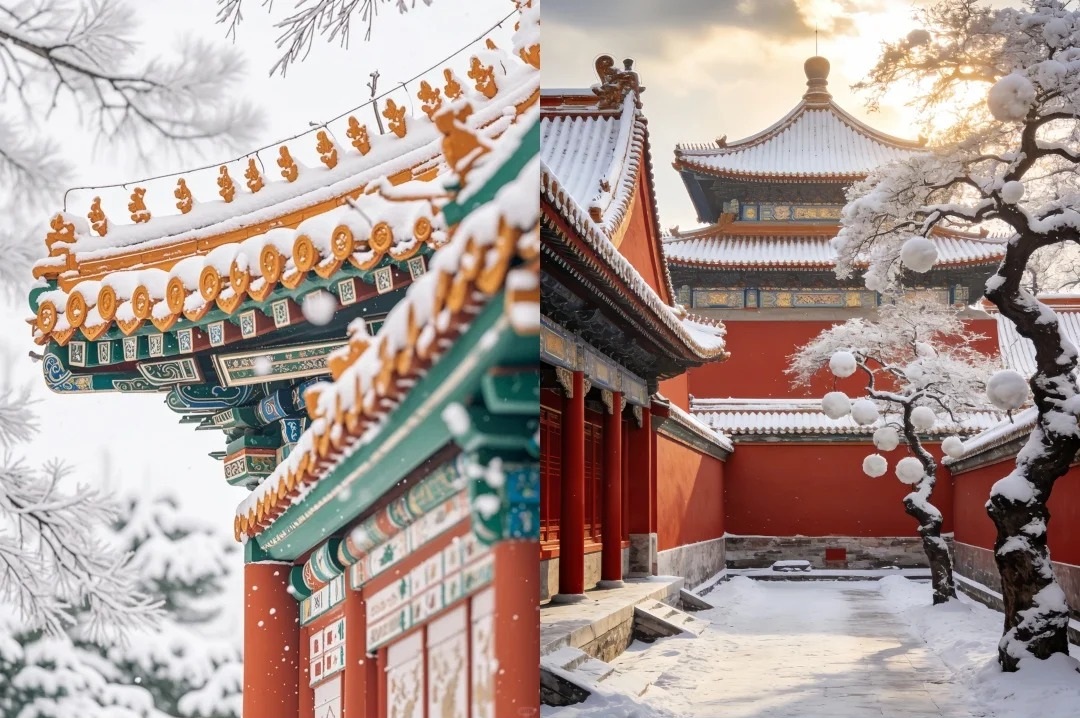 北京的初雪總是來得鄭重——它不像南國的雪那般矜持羞澀,而是浩浩蕩蕩,帶著北地特有的慷慨與從容。當這場初雪悄然降臨紫禁城時,整座宮殿仿佛被施了時光的魔法,朱紅宮墻在皚皚白雪的映襯下褪去了平日的威嚴,顯露出難得一見的溫潤光澤。