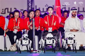 在開幕式上,智能機器人“墨茵”作為本次賽事奇瑞指定發言人,與亞洲殘奧委員會主席 Majid Rashed 及迪拜皇室成員親切互動,共同為本屆亞青殘運會啟幕。機器狗(Argos) 則以“代表團領隊伙伴”的身份陪伴運動員列隊入場,收獲陣陣喝彩。“墨茵”更是在與會嘉賓的交流中使用中文、英語、阿拉伯語、馬來語等9種語言與嘉賓及觀眾交流,展現了奇瑞科技實力。