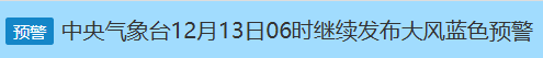 預(yù)計(jì),12月13日08時(shí)至14日08時(shí),新疆北部、青海東部和南部、西藏北部、川西高原北部、內(nèi)蒙古中部、華北西部和北部、黃淮西部、山東半島、遼東半島等地部分地區(qū)有5~6級(jí)、陣風(fēng)7~8級(jí)的大風(fēng),其中,新疆山口地區(qū)陣風(fēng)可達(dá)8~9級(jí);黃海大部海域、東海大部海域、臺(tái)灣海峽、臺(tái)灣以東洋面、巴士海峽、南海北部和中部海域、南海西南部海域、北部灣將有7~8級(jí)、陣風(fēng)9級(jí)的大風(fēng),其中臺(tái)灣海峽、臺(tái)灣以東洋面的部分海域風(fēng)力可達(dá)9級(jí)、陣風(fēng)10級(jí)。