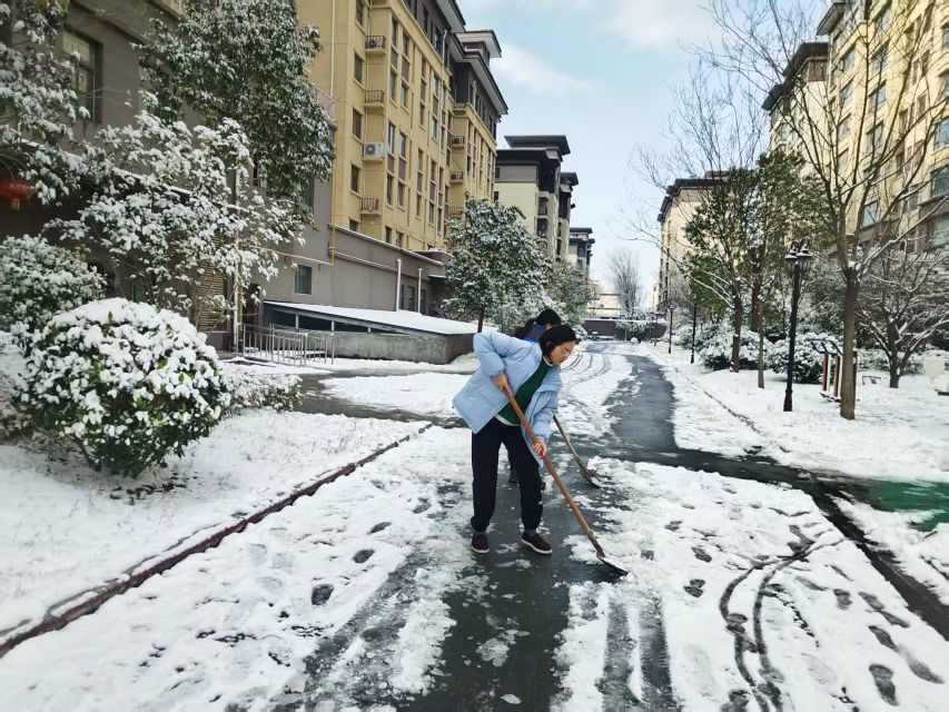 在三和恒都小區,“中國好人”王智慧帶領志愿者和熱心居民,重點清理了小區主干道、單元門口及停車場出入口的積雪。“雪一停就得趕緊動起來,特別是老人和孩子經常走的地方,得優先保障。”王智慧一邊揮動鐵鍬一邊說道。在她的帶動下,不少晨起居民自發加入,清雪效率大大提高。
