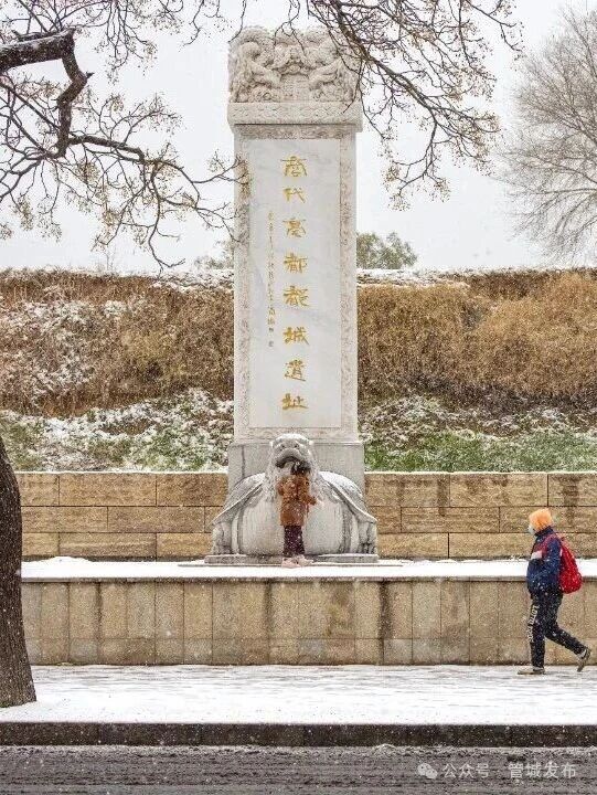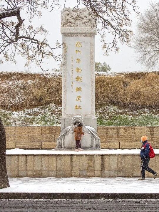 文廟的紅墻黛瓦覆著薄雪,飛檐輪廓在白雪勾勒下更顯厚重,古建與白雪相映,韻味悠長;城墻覆了雪,儼然一副徐徐鋪展的《千里江山圖》;阜民里小紅樓映襯著白雪,像一頁被季節輕輕合起的舊書;亳都·新象的石雕都戴上了毛茸茸的雪帽子,孩子們攢著雪球堆起雪人,笑語驅散了寒意... ...這場雪,讓商都的老巷與新景皆煥生機,處處皆是鮮活新象。