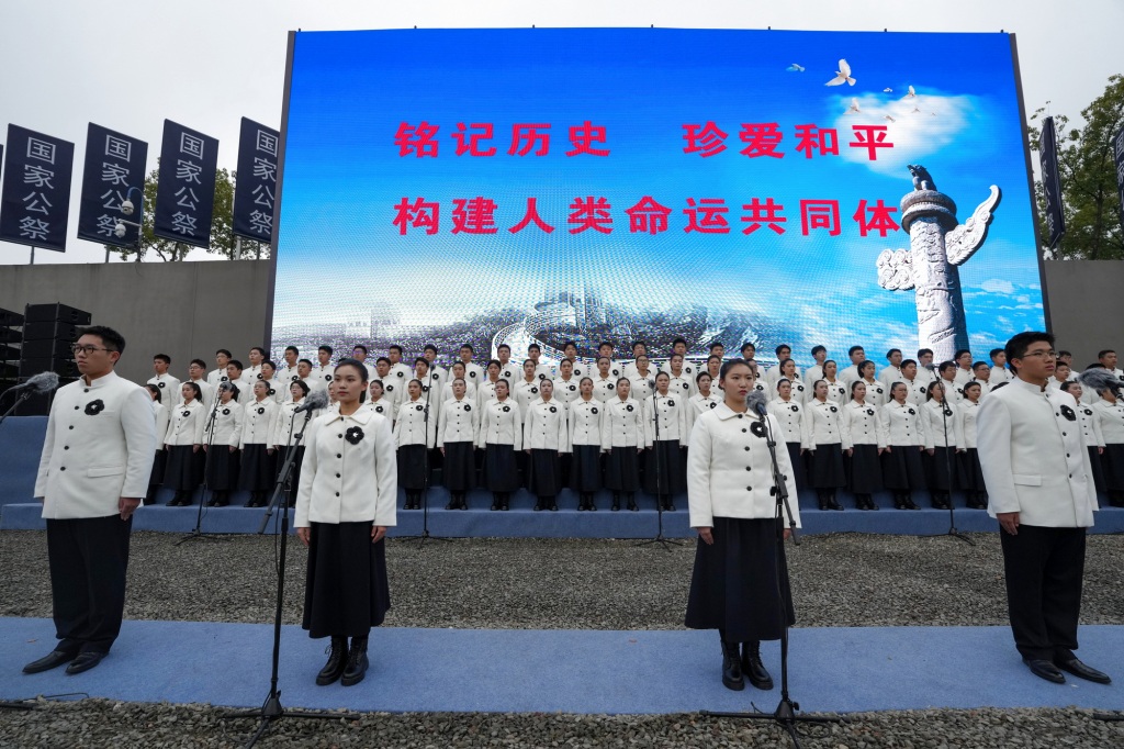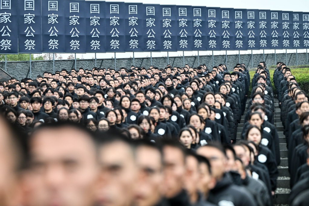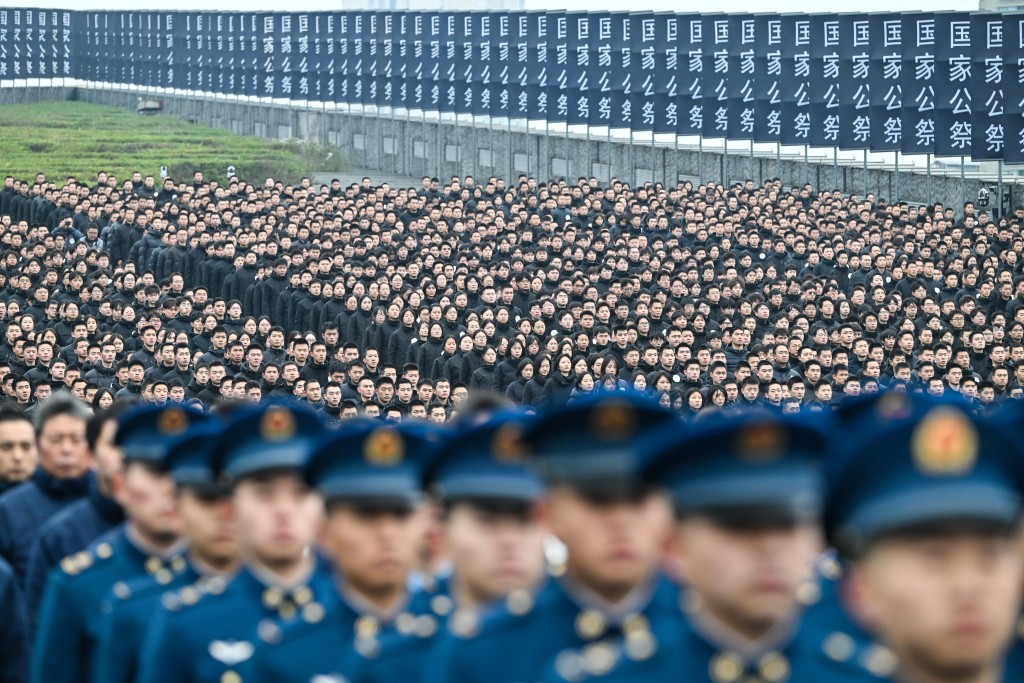 12月13日,南京大屠殺死難者國(guó)家公祭儀式現(xiàn)場(chǎng)。 新華社 圖