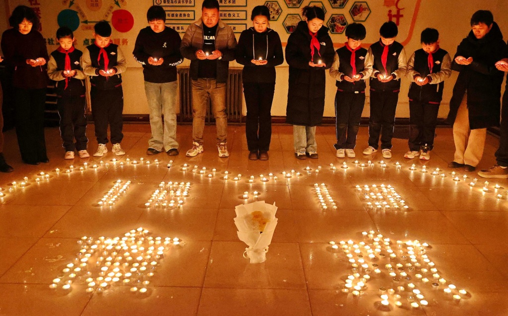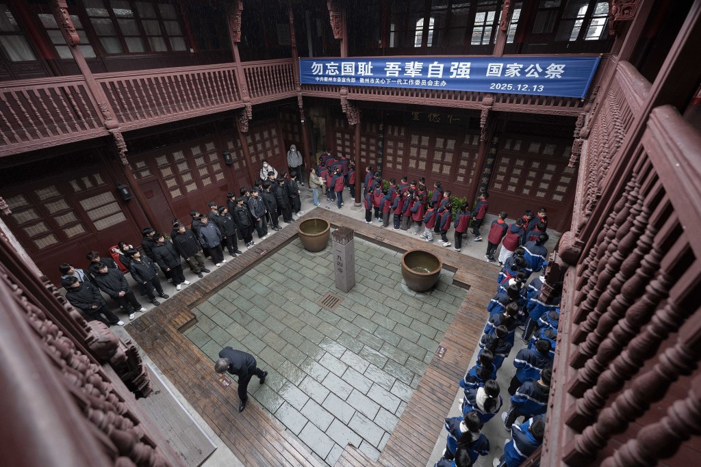 12月12日,在江蘇省揚(yáng)州市徐凝門街社區(qū),學(xué)生參加國(guó)家公祭日紀(jì)念活動(dòng)。