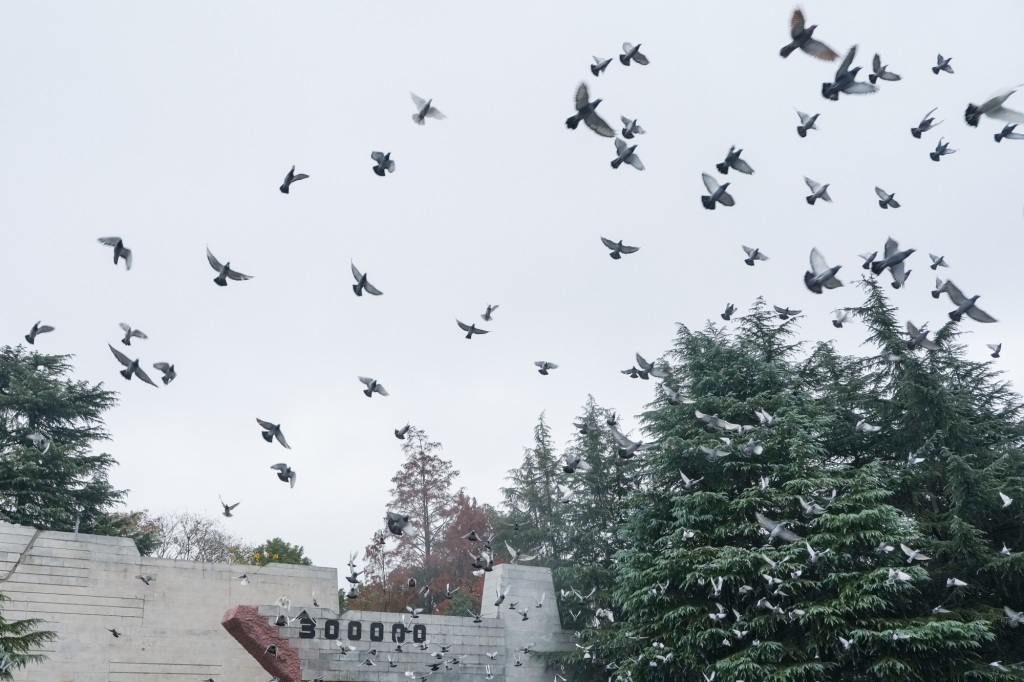 12月13日,南京大屠殺死難者國(guó)家公祭儀式現(xiàn)場(chǎng)放飛和平鴿。 新華社 圖