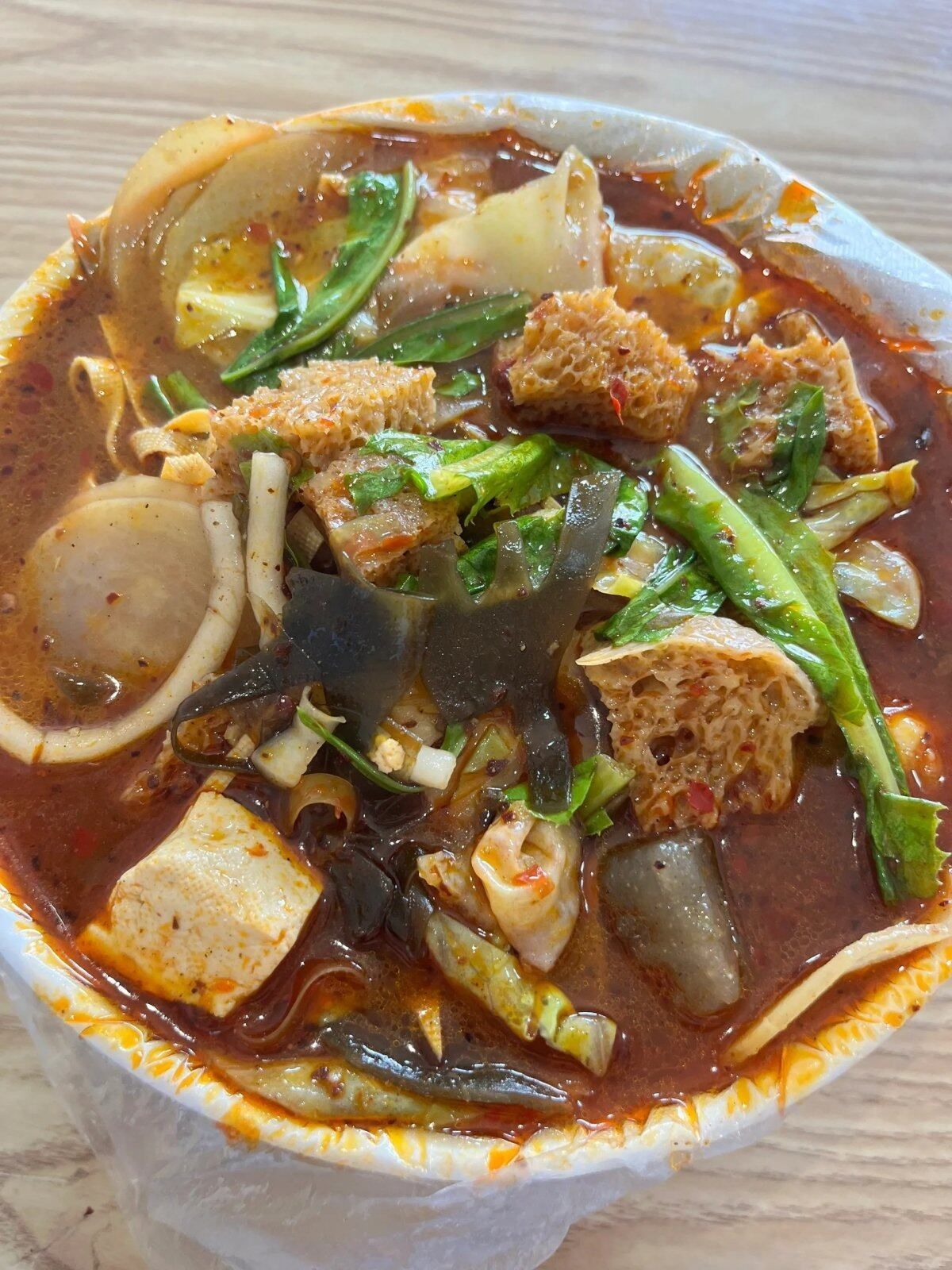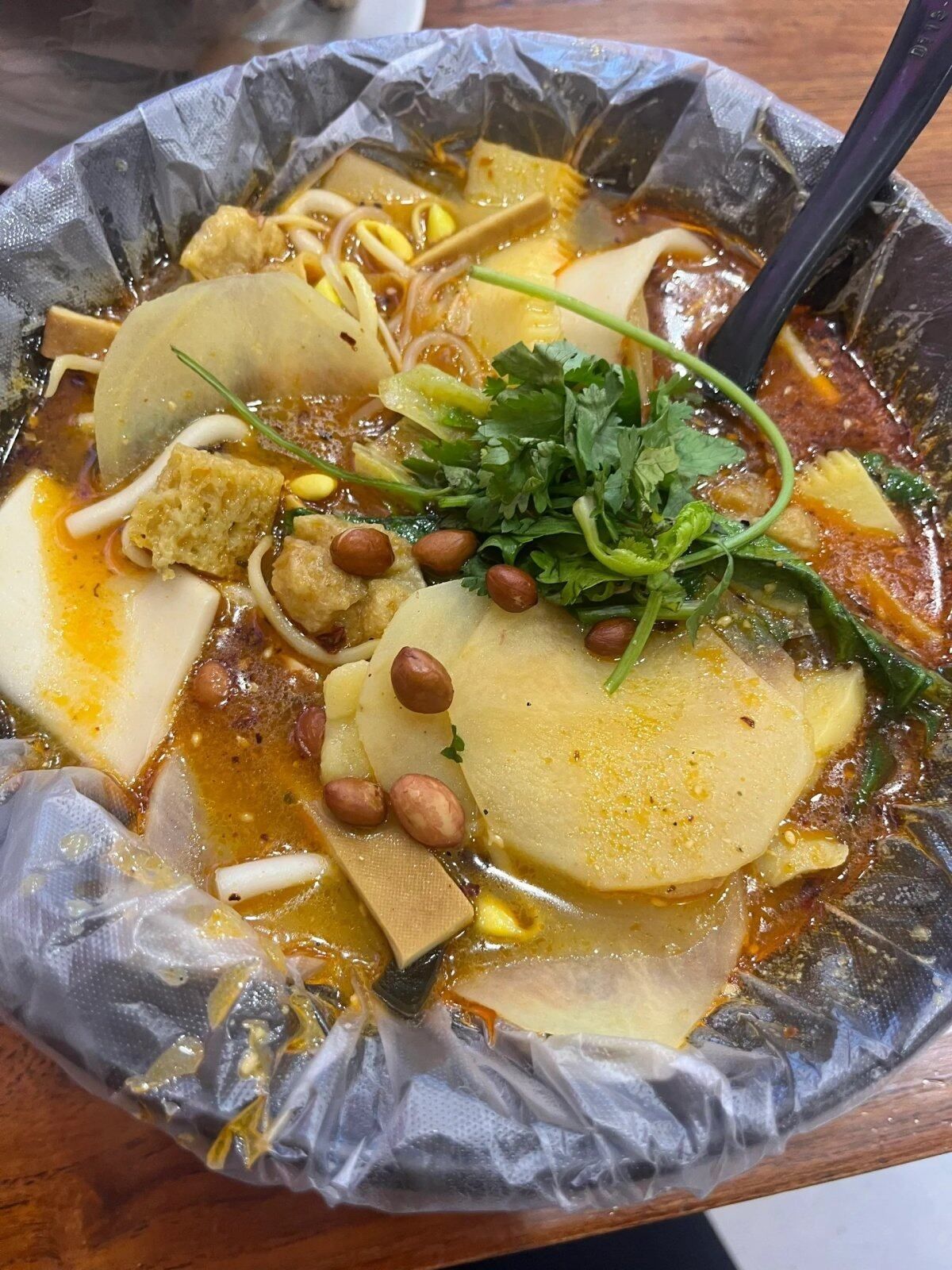 入口是明顯的甜味,緊接著醋的酸爽提鮮,最后辣椒的熱辣在舌尖收尾。這種“甜而不膩,酸而不澀,辣而不燥”的三重奏,是輝縣人獨有的味覺密碼。加上很多店家會用牛骨高湯打底,加入秘制的糖醋醬料,所以湯汁喝起來非常醇厚,不像普通的麻辣燙湯底那樣只是咸辣。