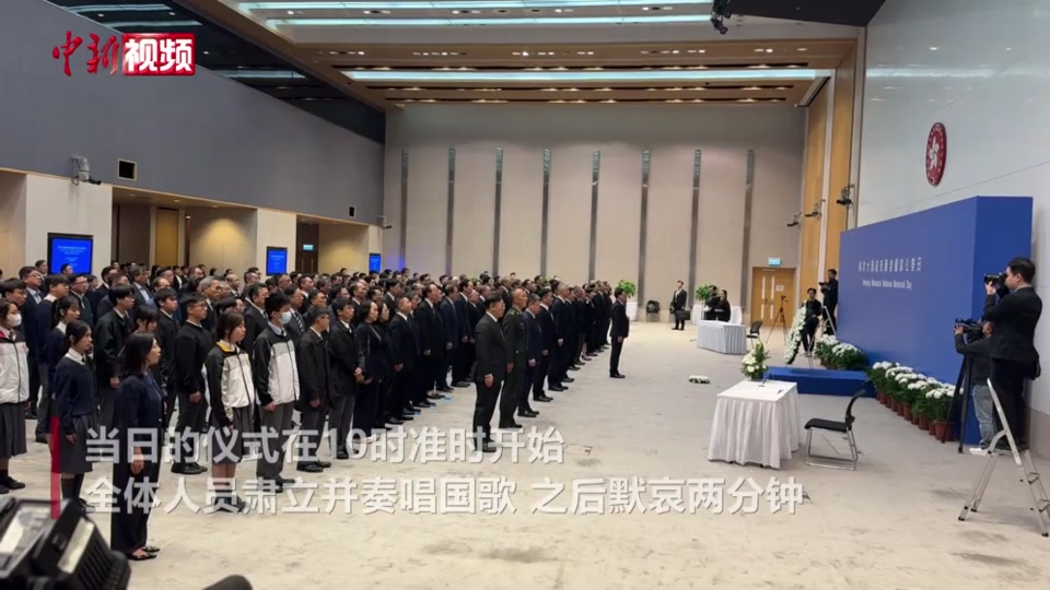 12月13日是南京大屠殺死難者國家公祭日。香港特區政府當天在特區政府總部舉行儀式,悼念南京大屠殺死難者。香港特區行政長官李家超、特區政府主要官員、中央駐港機構代表、青年學生代表等出席儀式。圖為各界人士在儀式現場鞠躬致哀。
