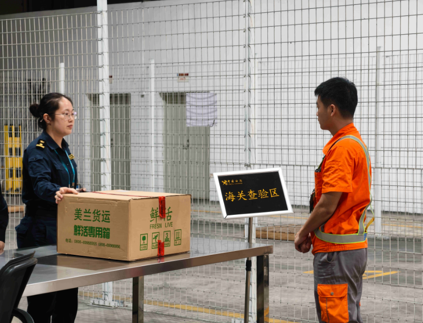 12月3日,海口美蘭國(guó)際機(jī)場(chǎng)開(kāi)展“合成演練和7x24小時(shí)”熱運(yùn)行工作,海口海關(guān)所屬海口美蘭機(jī)場(chǎng)海關(guān)關(guān)員正在對(duì)演練貨物進(jìn)行查驗(yàn)。截至12月5日,美蘭機(jī)場(chǎng)口岸累計(jì)熱運(yùn)行貨物221票、469件。