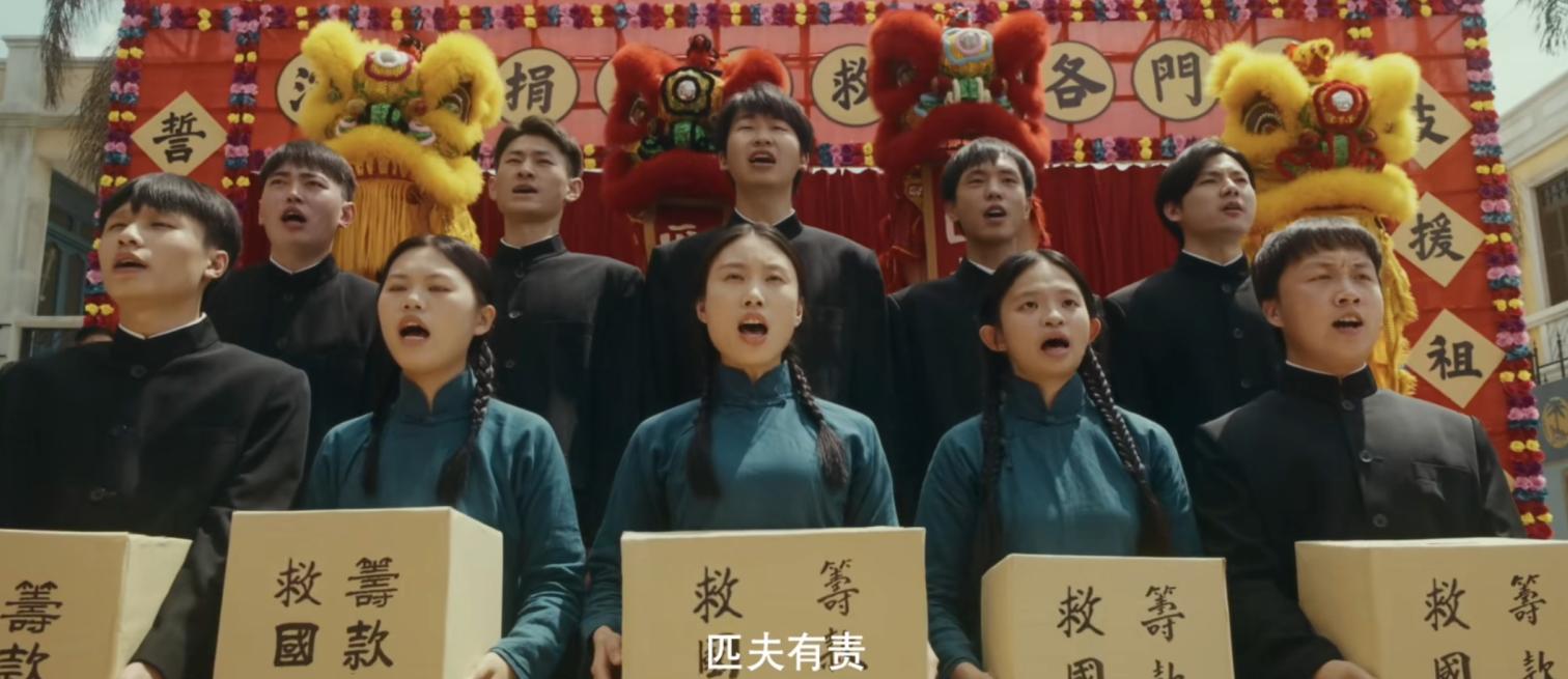 而且給小女孩小漁的錢,她立馬又全部捐獻了。現場的人無不動容,紛紛把剛才賺的錢捐獻出來,為抗日救國貢獻力量。