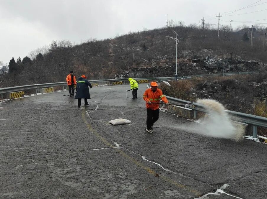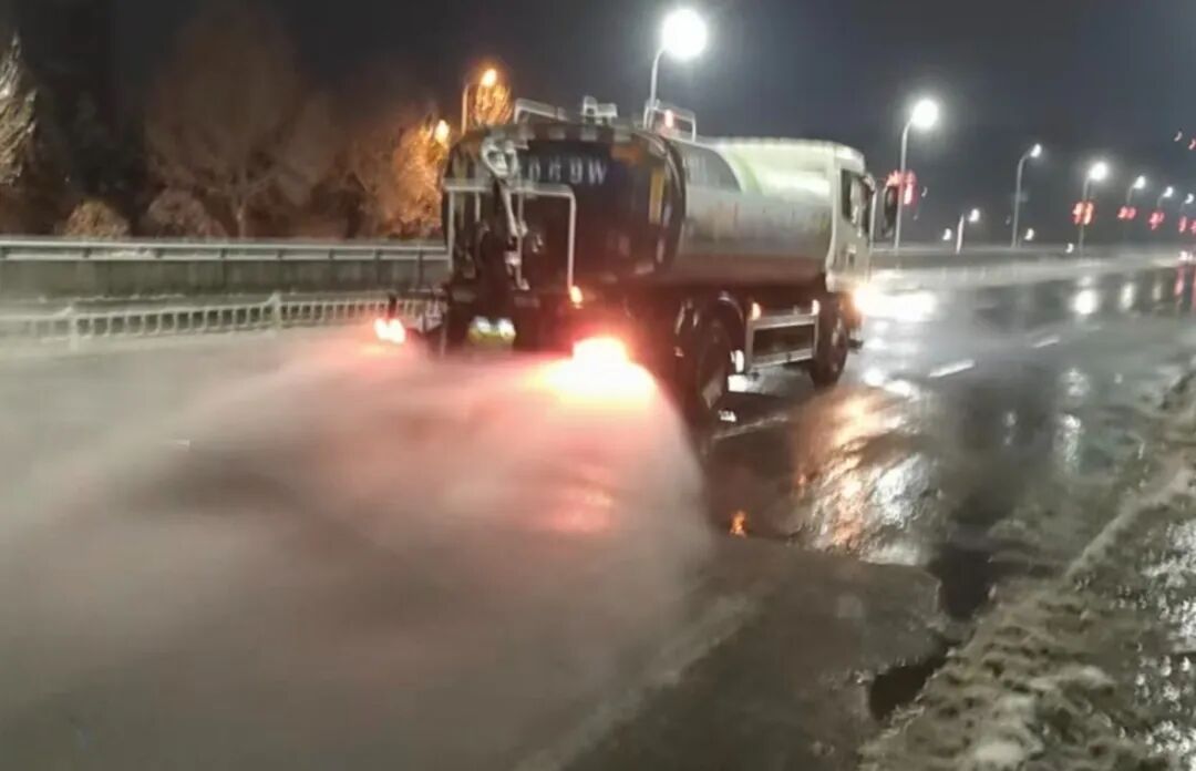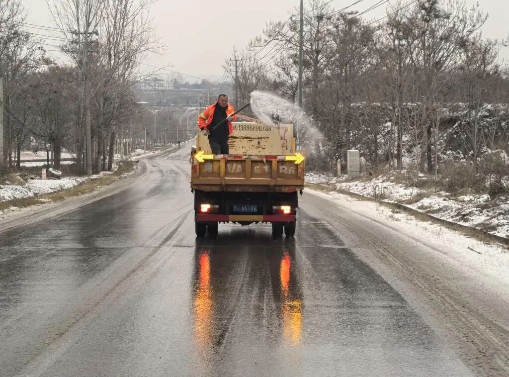 公路管理部門第一時間組織養護力量,對轄區內國省、縣道路開展預防性巡查與融雪除冰作業,重點對橋梁、陡坡、彎道等易結冰路段進行全面排查;同時,結合氣象預警信息,針對夜間低溫易引發路面結冰的特點,科學調配作業車輛精準撒布融雪劑,從源頭降低結冰風險,保障道路通行條件。